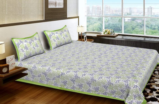 Cotton King Size Standard Ditsy Pattern Cotton Jaipuri Bedsheet With 2 Pillow Covers For Double Bed - JBB42