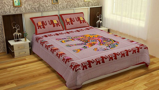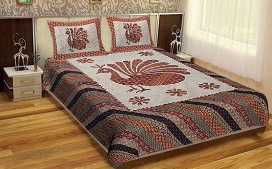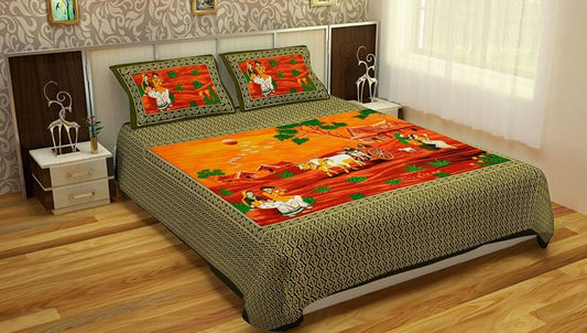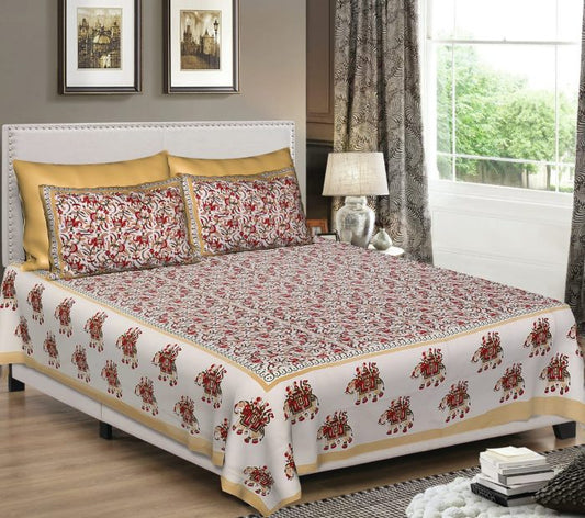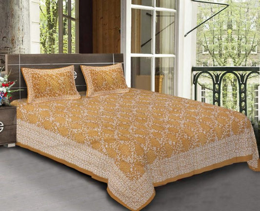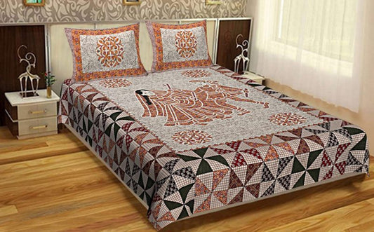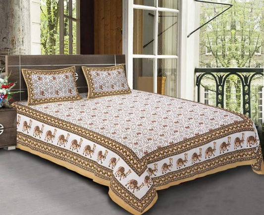 King Size Standard Cotton Camel Print Rajasthani Bedsheet With Pillow Covers For Double Bed - JBB36