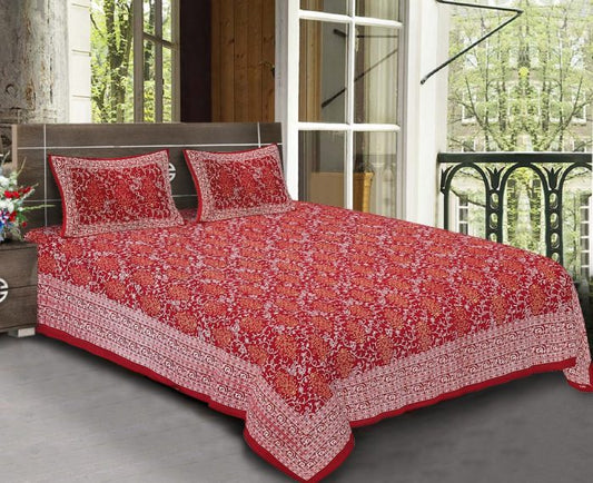 Red Maharaja Print Cotton Double Bed Sheets With Pillow Covers - JBB08