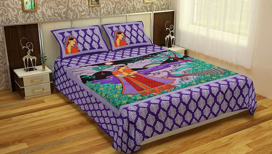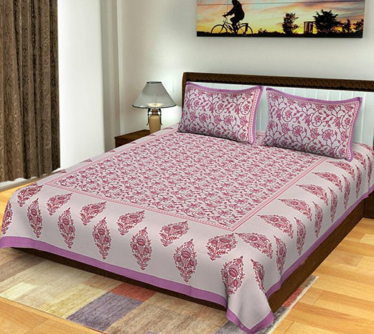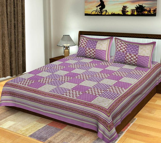 Violet Cotton King Size Standard Multi Pattern Jaipuri Bedsheet With Pillow Covers For Double Bed - JBB32