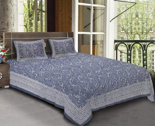 Blue King Size Standard Rajasthani Bedsheet With 2 Pillow Covers For Double Bed - JBB40