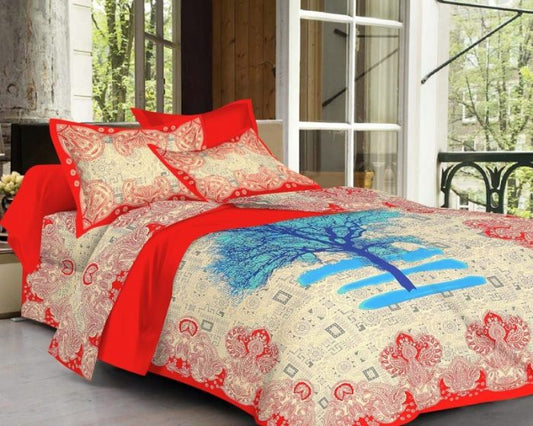 Red Tree Print Pure Cotton Double Bedsheet With Pillow Covers - JBB06