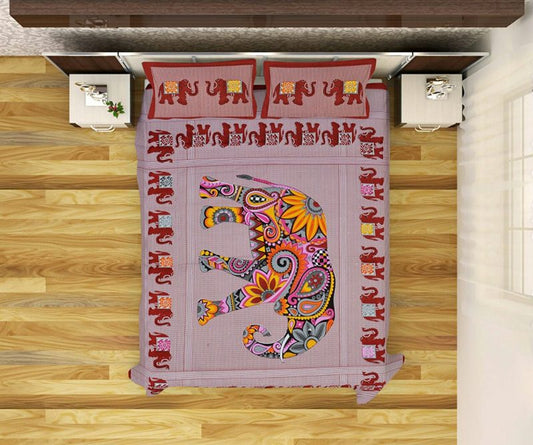 Purple Elephant Print Cotton Double Bedsheet With Pillow Covers - JBB14