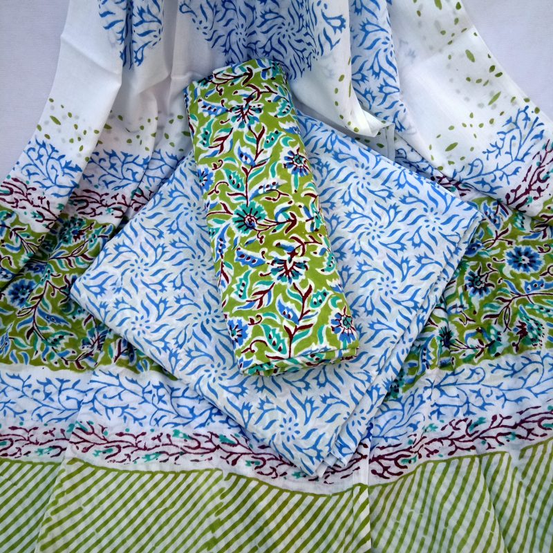Green Jaal Pattern Jaipuri Block Printed Salwar suit with Mulmul Dupatta - JB134