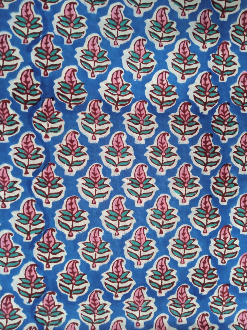 Blue Buti Pattern Pure Cotton Hand Block Printed Fabric for Kurtis - JBR05