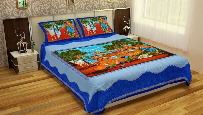 Buy Traditional print Cotton Blue Village Print Cotton Double Bedsheet with pillow covers. Sanganeri print bedsheets and Traditional prints are available at Jaipur Bazar. All kinds of double bed sheets are available at the best prices.