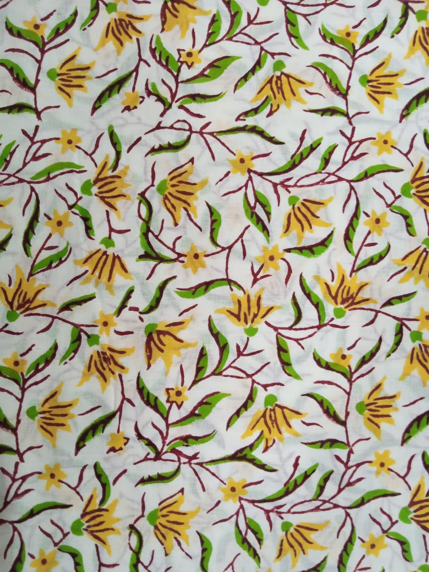Connect with us today. We are having 500+ Fabrics design available for print on demand. We are manufacturer of Hand Block printed Fabrics, also having a wide range of Screen print fabrics also.