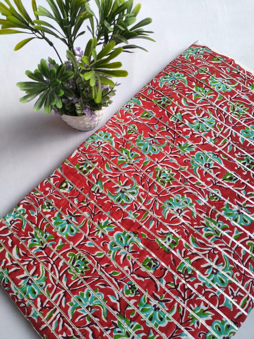 Gota Patti work on Hand block printed fabric.