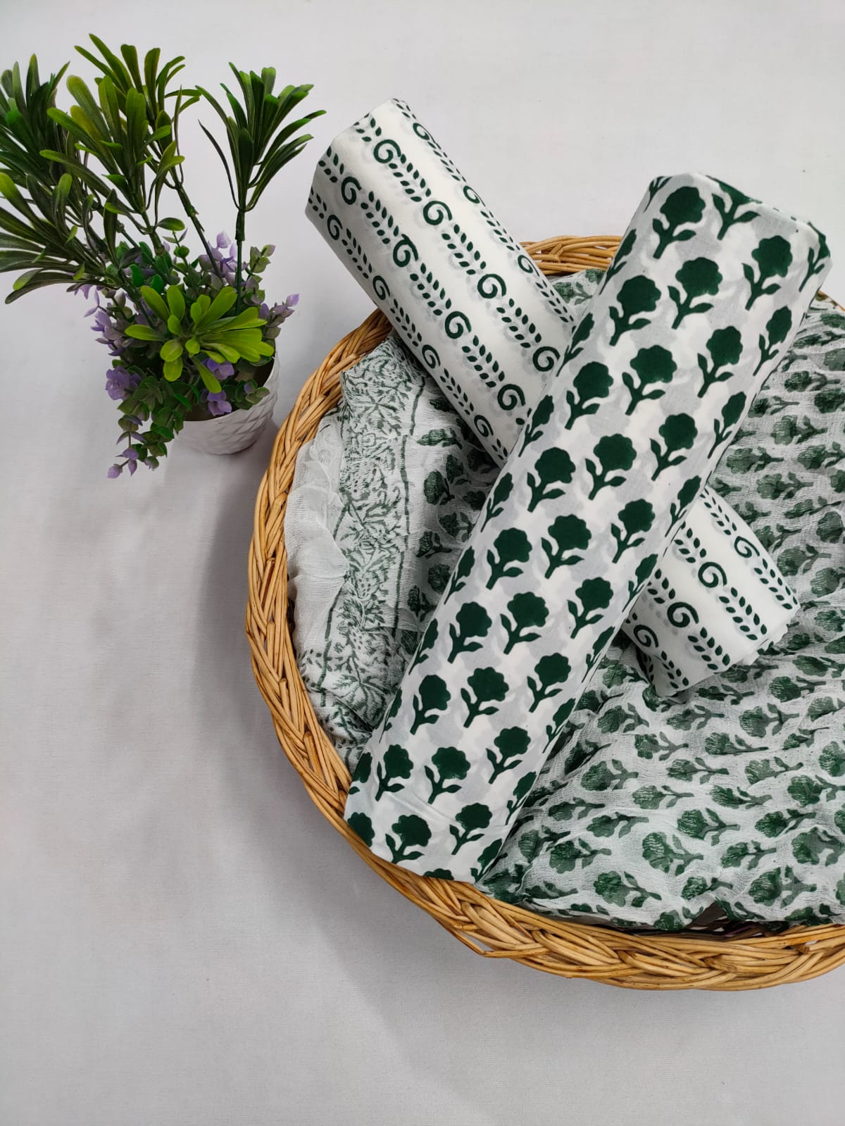 Hand Block Suit Set with Chiffon Dupatta - JBSSCFL1-11
