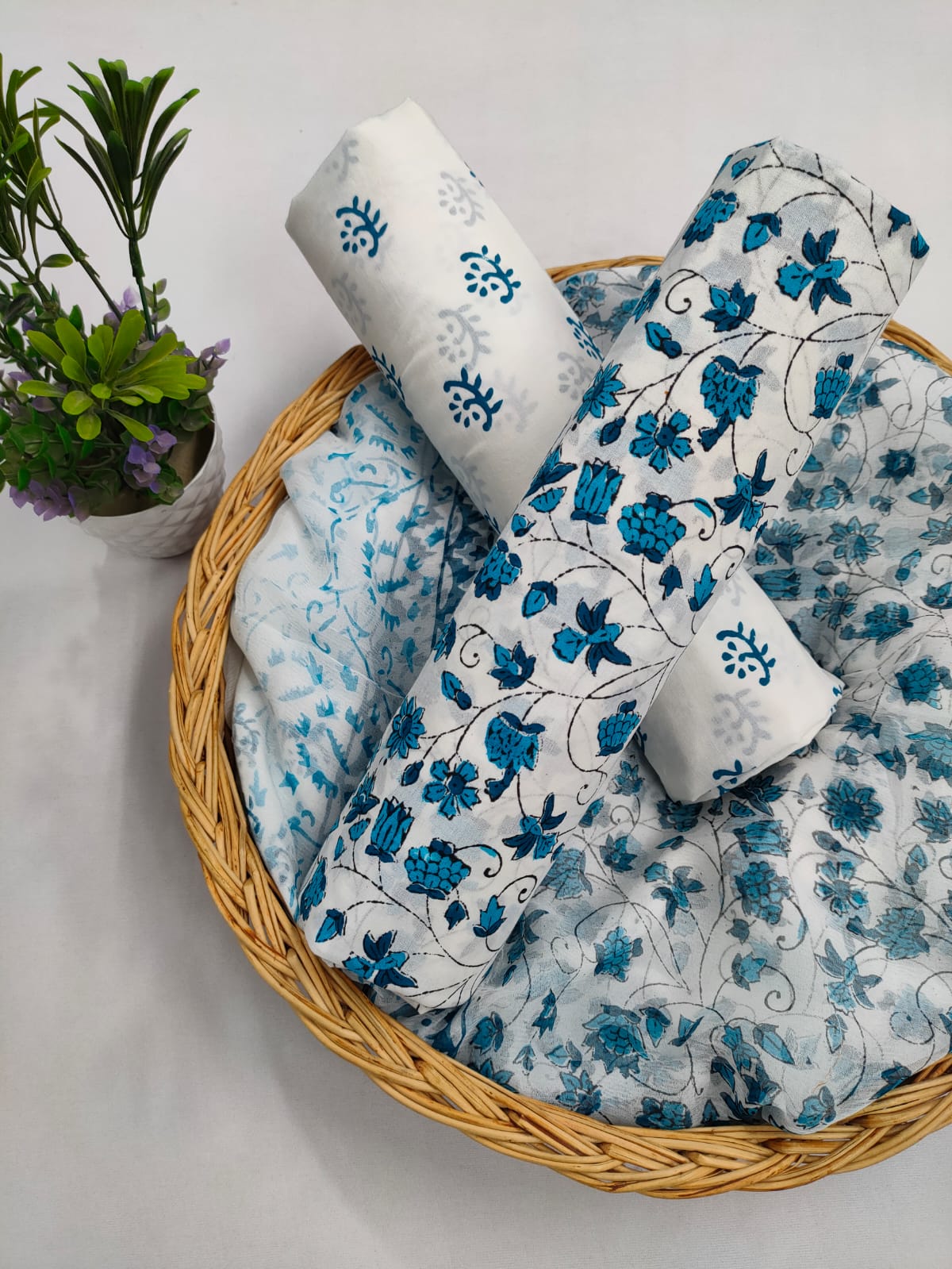 Hand Block Suit Set with Chiffon Dupatta - JBSSCFL1-52