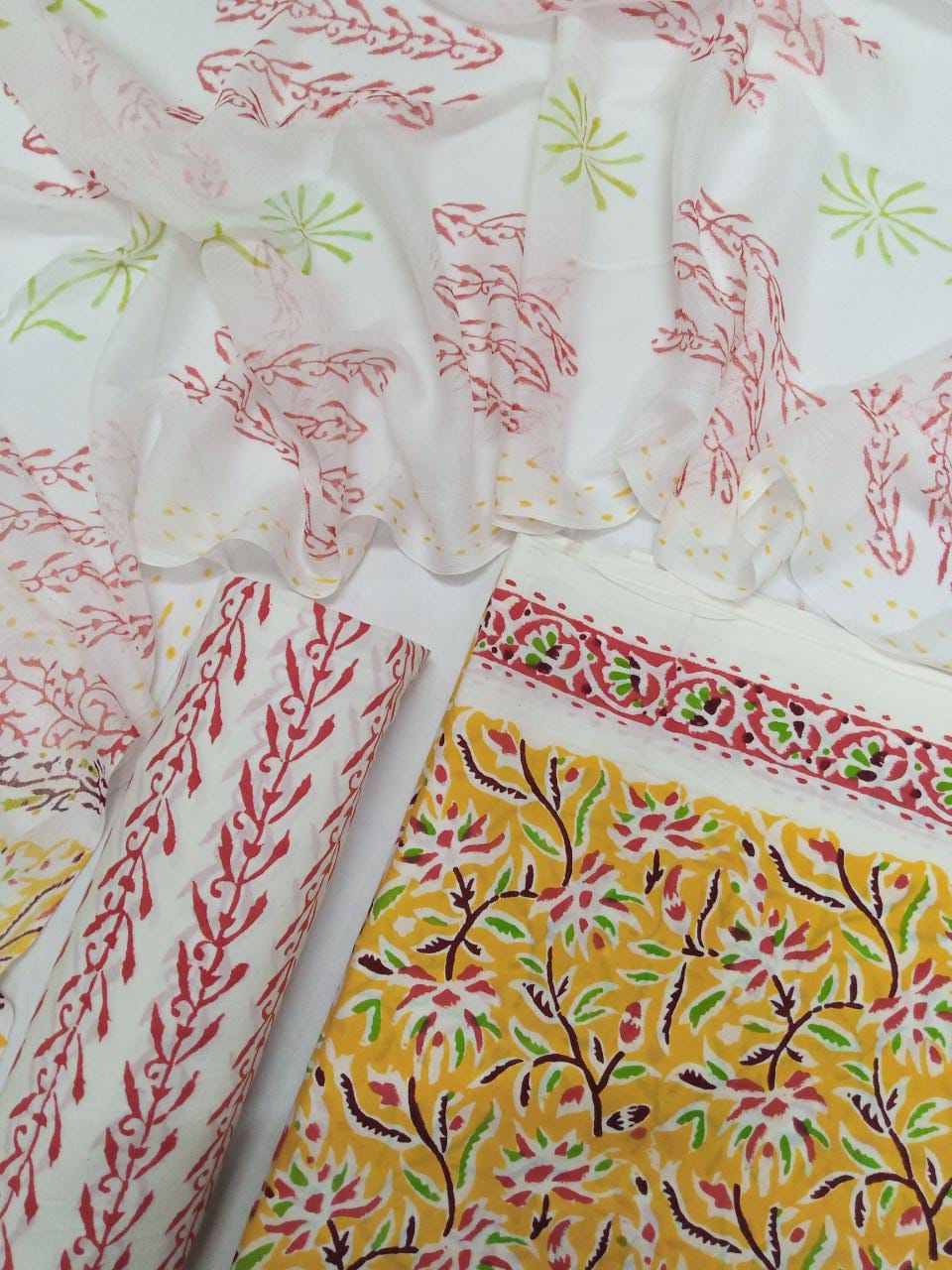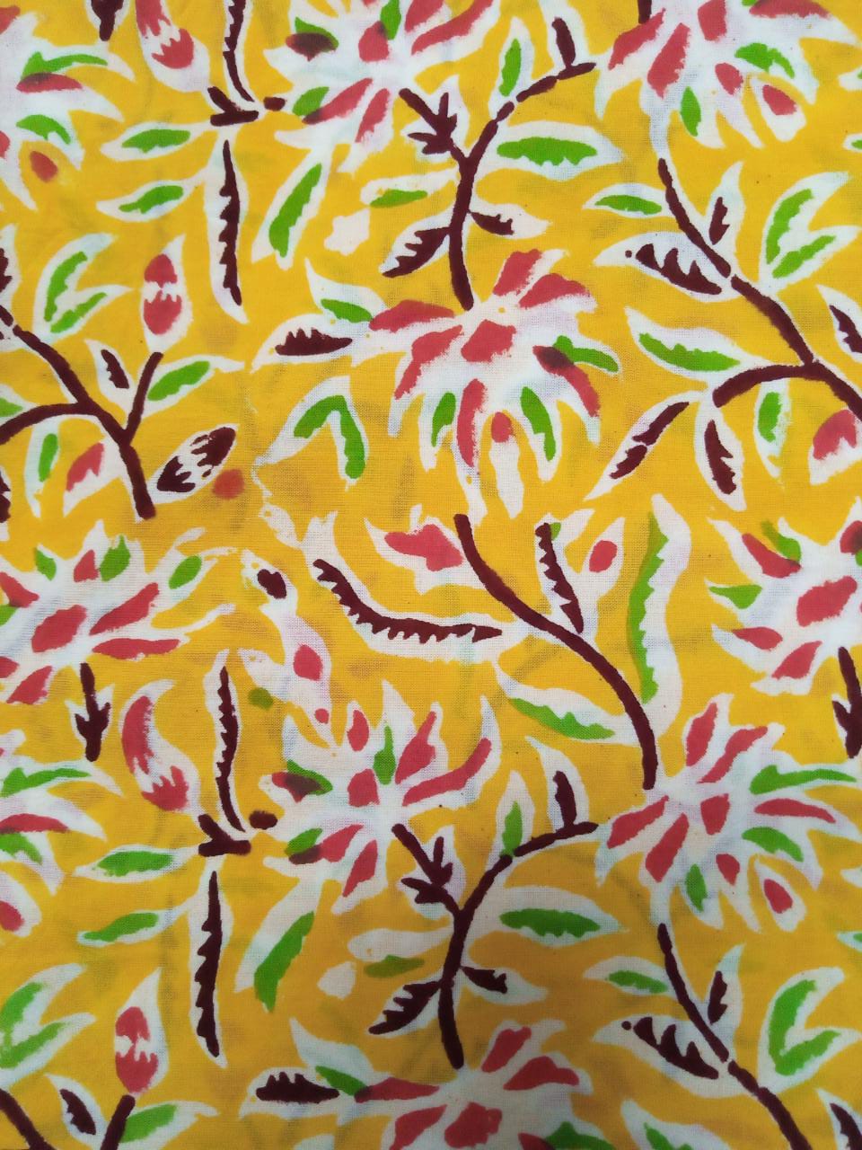 Yellow Floral Hand Block Printed Pure Cotton Unstitched Salwar Suit with Chiffon Dupatta - JB64