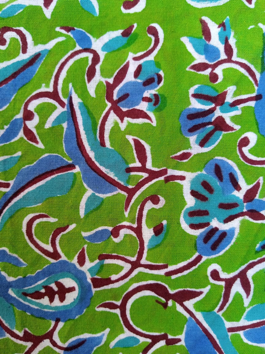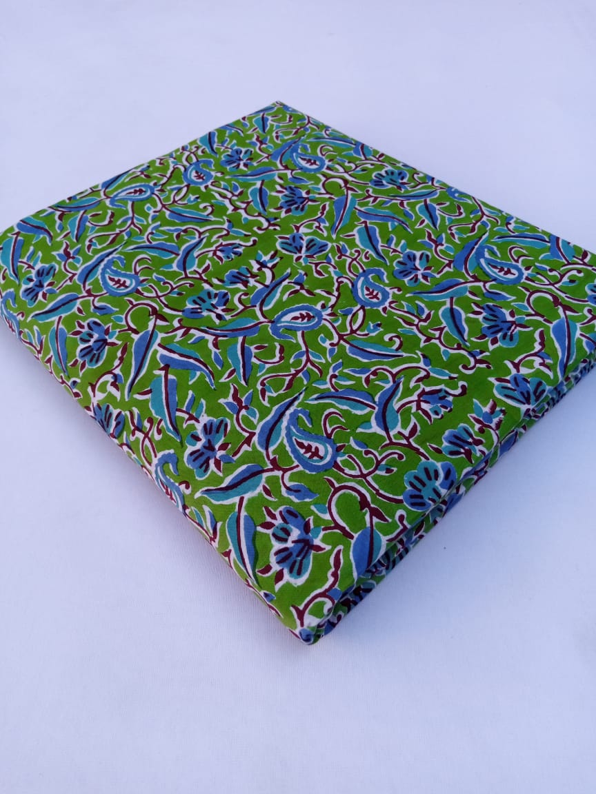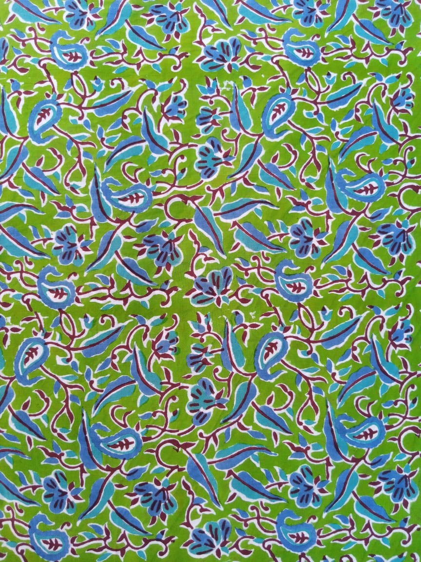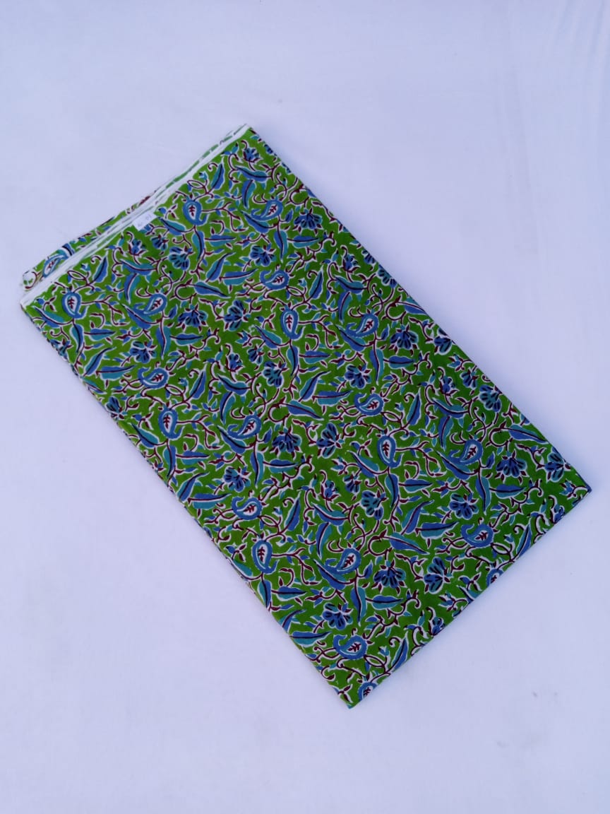 Green with Blue Floral Pure Cotton Hand Block Printed Fabric - JBR53