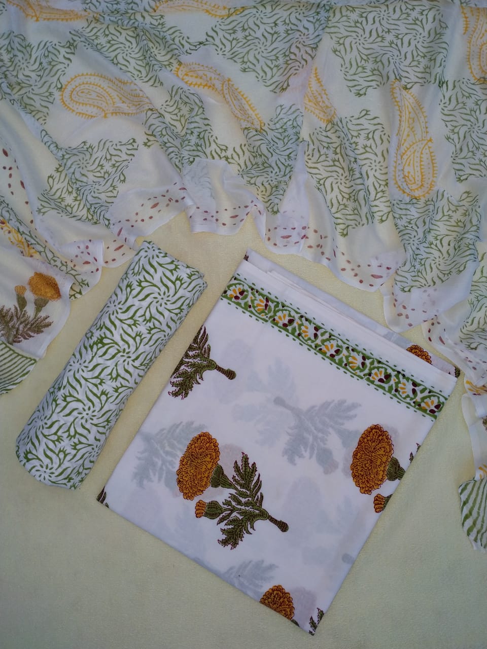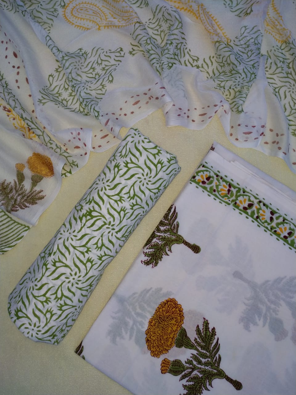 Floral Hand Block Print Jaipuri Suits with Chiffon Dupatta - JB106