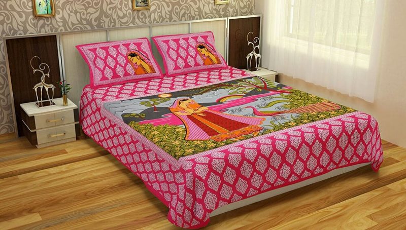 Buy Traditional print Cotton Pink Women Print Bedsheet with pillow covers. Sanganeri print bedsheets and Traditional prints are available at Jaipur Bazar. All kinds of double bed sheets are available at the best prices.