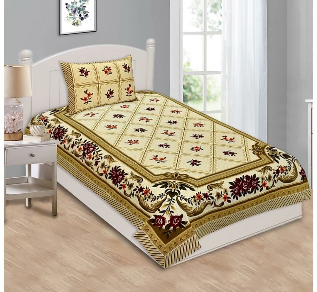 TAG: Singe-Bed Cotton Bedsheet with 2 pillow covers | Jaipur/Sanganeri Print Bedsheet.