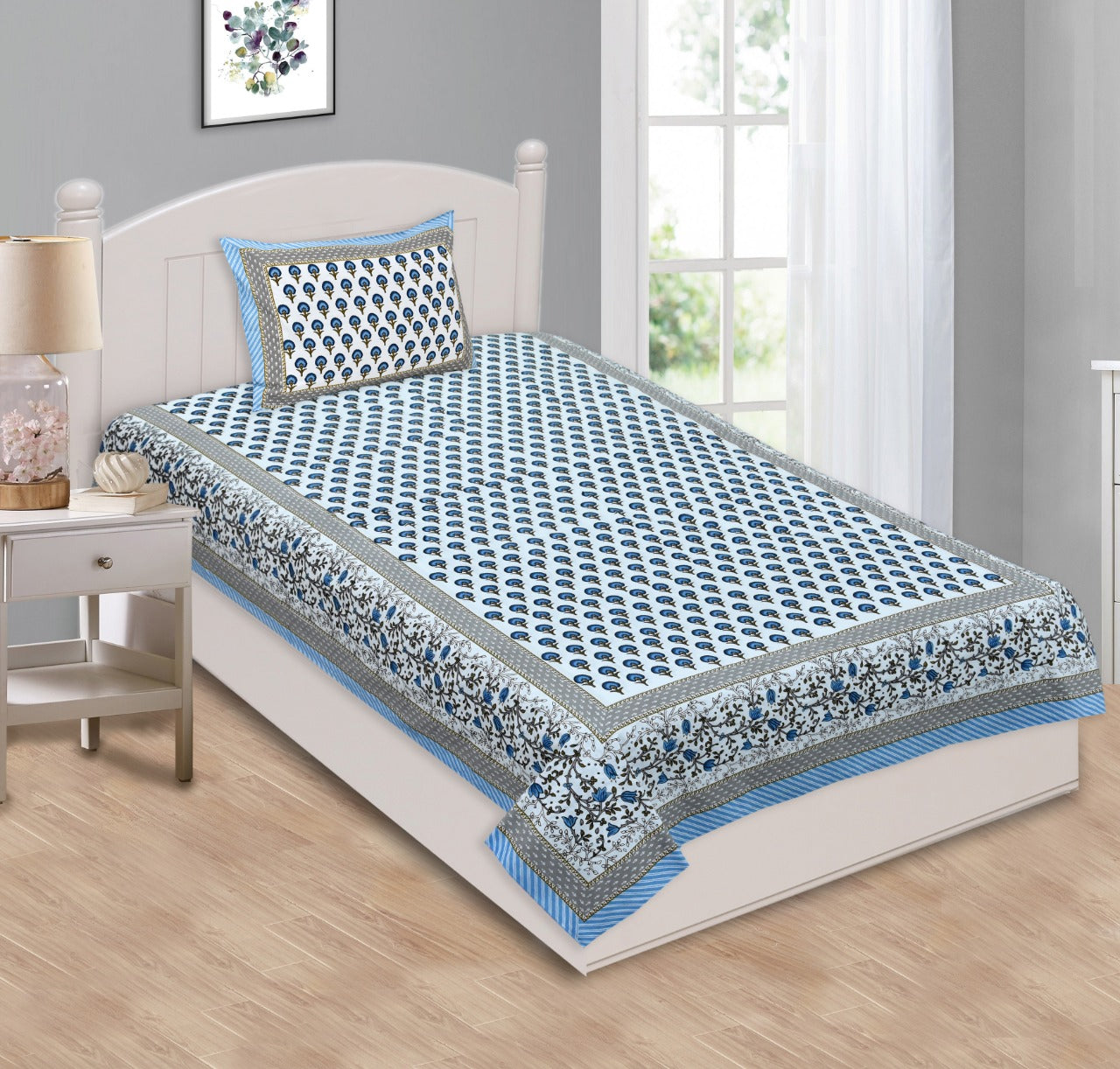 TAG: Singe-Bed Cotton Bedsheet with 2 pillow covers | Jaipur/Sanganeri Print Bedsheet.